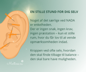 NADA står for: National Acupuncture Detoxification Association – men i dag handler behandlingen ikke kun om afgiftning, men om indre regulering og ro.